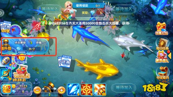 2、成功捕獲魚可以獲得鉆石,鉆石可以升級炮臺,炮臺等級越高越容易捕獲魚。