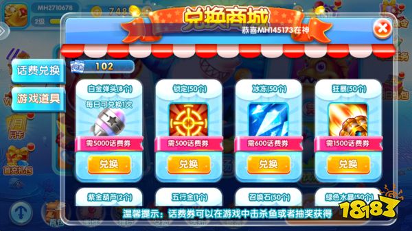 5、在漁場捕獲的話費卷可以兌換彈頭、技能以及道具。