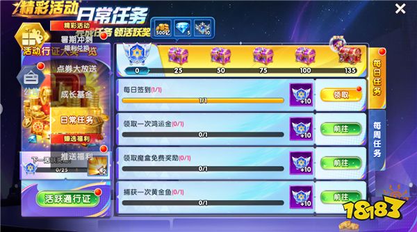 完成每日任務以及每周任務獲得積分,當達到一定積分即可領取金幣