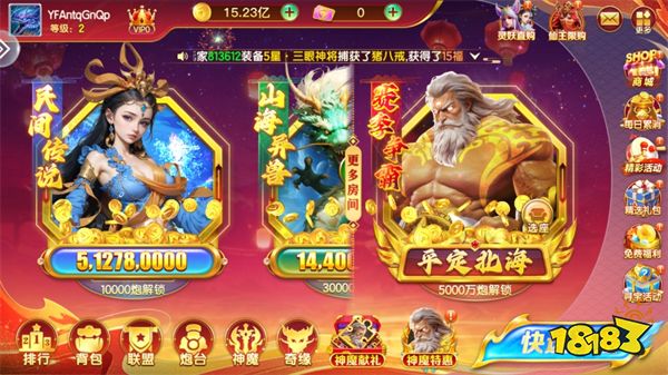 民間傳說(shuō):以中國(guó)民間傳說(shuō)為背景,融入神話元素,玩家可在捕魚(yú)的同時(shí)解鎖傳說(shuō)故事,挑戰(zhàn)神話中的特殊魚(yú)類(lèi)。