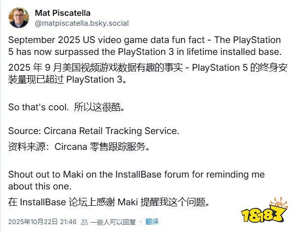 根據(jù)市場研究公司Circana分析師Mat Piscatella發(fā)布的數(shù)據(jù),截至2025年9月,PS5在美國的銷量正式超越PS3。PS3在美國市場奮戰(zhàn)約十年,而PS5僅用不到五年時間即完成超越。